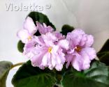Крупные махровые бело-сиренево-фиолетовые вариабельные цветы с бахромчатыми краями лепестков. Крупная розетка темно-зелёных листьев с кремовой окаймляющей пестролистностью. Сорт 2023 года. |
