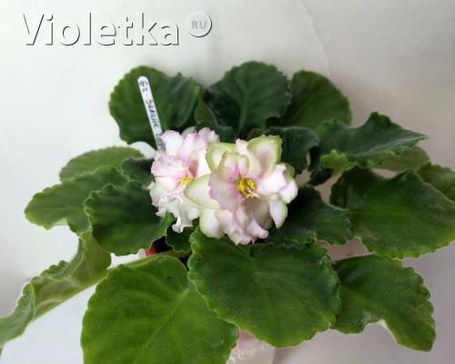 Бело-кремовые махровые цветы с салатовым краем и изнанкой. Шапочное цветение на зеленой аккуратной розетке.Цена: 150руб.