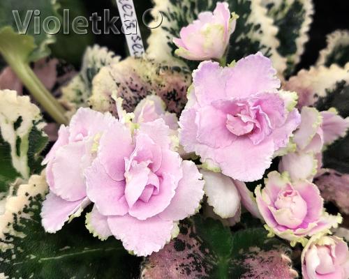 Очень нежные махровые бело-розовые розочки на идеальной пестролистной розетке.