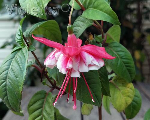 Ампельная форма. Чашелистики насыщенно-красные. Юбочка пушистая, белая с красными мазками. Цветы махровые.Цена: уточняйте наличие