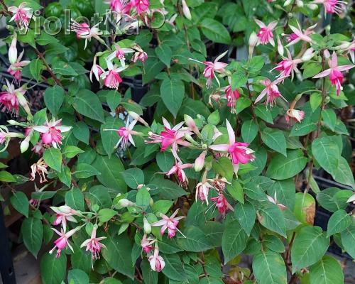 Кустовая форма. Чашелистики белые с зеленым кончиком. Юбочка сиренево-розовая. Цветы мелкие, простые, смотрят вверх и в стороны. Обильнейшее цветение. Штамбовый сорт.