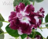Бордово-рубиновые цветки с белым центром. Розетка стандартная. Листья тёмно-зелёные. |
