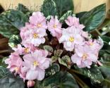 Дымчато-голубые полумахровые анютки с редким белым фэнтези с зеленью по краям лепестков.