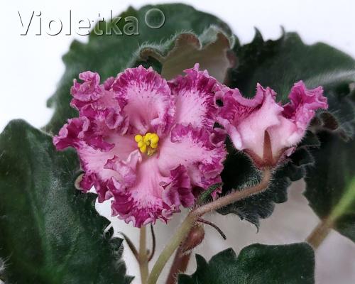 Розово-фуксиевые кудрявые цветы с фэнтези по лепесткам и более тёмными краями. Розетка компактная с удлиненными волнистыми листьями с красной изнанкой.Цена: 150руб.